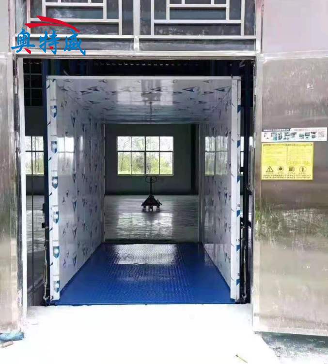 其中液压系统的组成由防坠、上下层门互动连锁看,可以实现多楼层的控制;同时设有溢流阀、手动泵、管路破裂阀等宁静装置使得设备的宁静性能有极大的包管。关于导轨式升降机的台面设计,台面以防滑纹钢板质料,台面平整且防滑耐用。